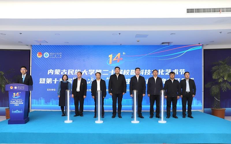 为深入贯初落实习近平总书记关于教育的重要论述,进一步支持大学生创新创业,提升大学生创新创业能力,5月9日,内蒙古民族大学第二十届校园科技文化艺术节暨第十四届“挑战杯”大学生创业计划竞赛开幕式在图书馆二楼大厅隆重举行。校党委书记赵东海,校党委副书记王烨辉,校党委委员、副校长裴志利,校党委委员、副校长、统战部部长王百涛出席开幕式。开幕式由校团委副书记王强主持。校团委书记王振宇围绕我校第二十届校园科技文化艺术节暨第十四届“挑战杯”大学生创业计划竞赛筹备工作情况作了详细汇报。王烨辉向本次活动开幕表示热烈祝贺,向指导教师及筹备活动的工作人员表示感谢。