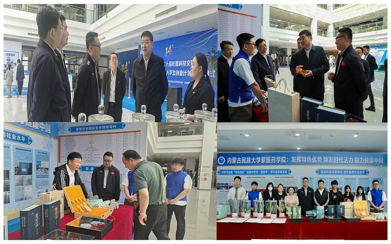 推进学院科技成果转化,提升学校服务社会水平。按照校团委部署,蒙医药学院作为特色学院精心布置了展区。展示了“蒙医药三部曲”,特色蒙药森登茶、森登油、手工香皂、保健枕头,冠心舒通胶囊、蒙医智能脉象模拟装置、阿给鼻炎喷雾剂等科研成果,展出了药用植物腊叶标本、浸渍原色标本和蒙药成药。现场氛围热烈,引来众多师生参观。