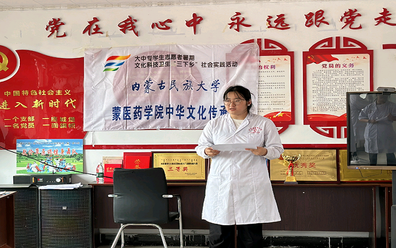 为积极响应国家关于推广普通话的号召,深入贯彻落实党的二十大关于“加大国家通用语言文字推广力度”的决策部署,提升农村地区和特殊群体的语言沟通能力,7月22日,国家语言文字推广基地(内蒙古民族大学)蒙医药学院师生赴库伦旗敖伦嘎查开展“推普实践 筑梦育人”社会实践活动。