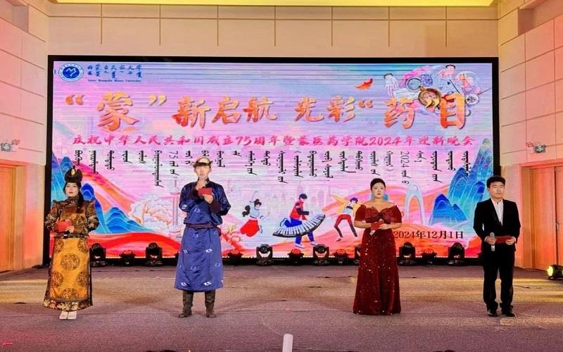 为庆祝中华人民共和国成立 75 周年,引领广大学生感党恩、听党话、跟党走,铸牢中华民族共同体意识,迎接新入学的蒙医药学子,12 月 1 日晚,蒙医药学院“蒙”启新航,光彩“药”目2024年迎新晚会在西拉木伦校区逸夫楼音乐厅隆重举行。学院党委书记孔繁利、副院长宝龙、党委副书记呼和等领导及老师,各学院学生干部代表以及蒙医药学院各班级学生欢聚一堂,共享这场精彩纷呈的视听盛宴,共同见证新生力量的融入。