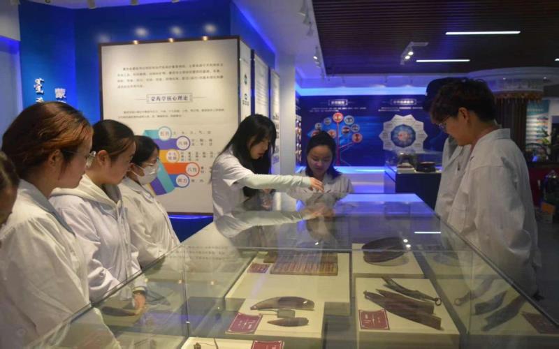 在蒙医药文化博物馆,师生们通过珍贵文物和专业讲解,系统了解了蒙医药的发展历程与理论体系。在研发中心,技术总监详细介绍了学院王青虎教授研发的“阿给喷剂”成果转化案例。师生们实地考察了十万级洁净生产车间,观摩了完整生产流程,并在技术人员指导下参与产品包装实践,学习关键信息标注规范。