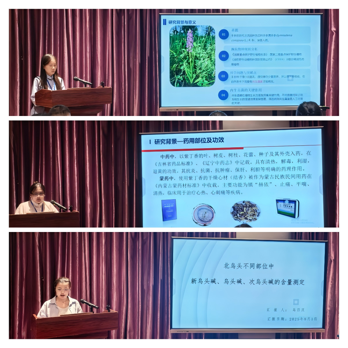 2025年8月1日,内蒙古自治区植物学会2025年学术年会研究生论坛在通辽市鑫达国际酒店举行。我院三位研究生斩获佳绩:永鲜凭借《手参内生真菌调控种子共生萌发研究》获一等奖,乌日汉以《北乌头不同部位毒性生物碱分布研究》获二等奖,高日哈以《紫丁香药用成香机制解析》获优秀奖。三项研究深度整合植-药学技术,破解蒙药资源保护、安全用药与香疗机理问题,创新性获得评审专家肯定。成果凸显我院多学科交叉培养成效,为蒙医药现代化提供新路径。