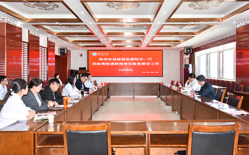 3月25日下午,校党委委员、副校长陈英松在科技处负责人张青山和仪器设备与实验室管理中心负责人孙孝文的陪同下,调研指导蒙医药学院各重点实验室建设工作。在蒙医药学院院长拉喜那木吉拉就学院重点实验室整体建设情况作简要介绍后,蒙药研发国家地方联合工程研究中心、蒙医药研发工程教育部重点实验室和国家药监局中药(蒙药)质量控制重点实验室的负责人分别就实验室建设目标、建设现状、建设规划等方面进行整体汇报,并对实验室建设和管理过程中所面临的困难与问题进行梳理。