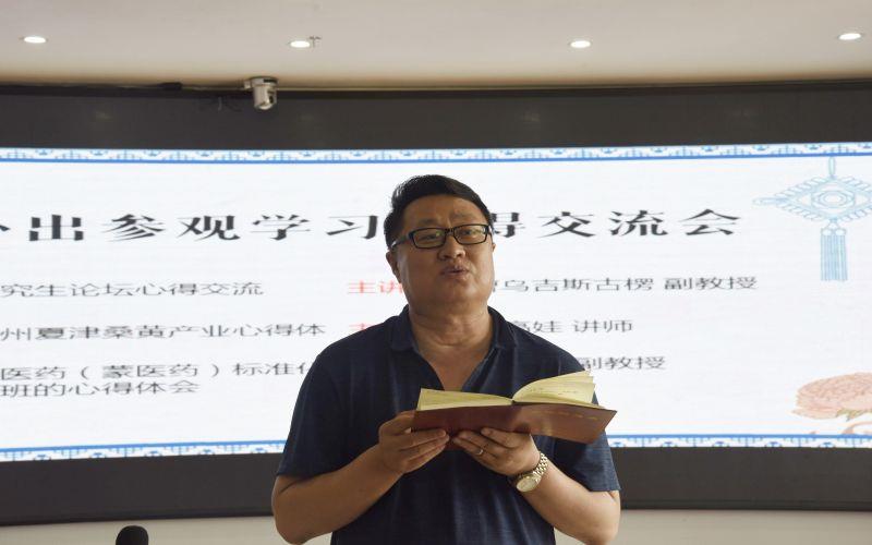 6月12日下午,学院在蒙医药教学科研大楼912会议室举办教师外出培训调研分享交流会,邀请曹乌吉斯古楞、康高娃和王秀梅三位教师作为主讲嘉宾,分享她们在外出学习中的所见所闻、所思所感。学院全体教师参加本次交流会,学院党委书记孔繁利主持会议。