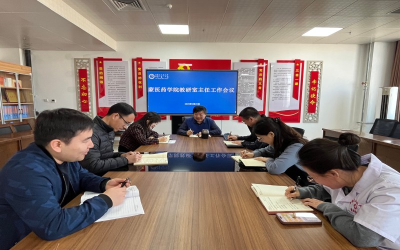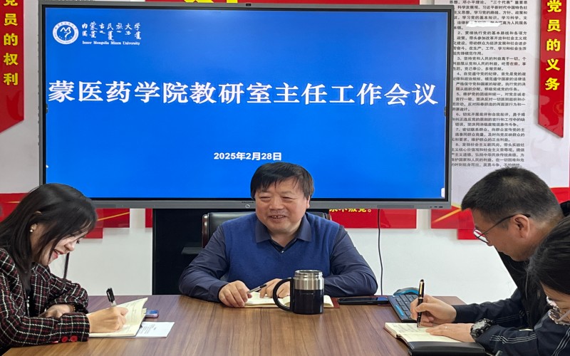2月28日上午,学院在蒙医药教学科研大楼913会议室召开教研室主任工作会议。会议由教学副院长宝龙主持,系主任、各教研室主任及教务办人员参加会议。